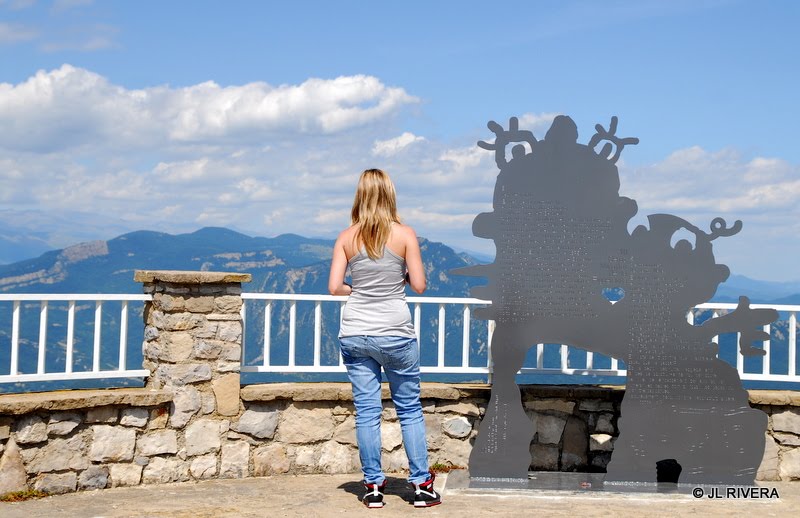 En dirección Berga, a mano derecha encontraremos la carretera que indica Rasos de Peguera y Santuario de Queralt. Seguiremos las indicaciones hacia el santuario, una vez arriba dejaremos el coche en el mirador y observaremos gran parte del Berguedà a nuestros pies. Las vistas son increíbles pero lo mejor está por llegar; a mano derecha encontraremos a Joanet y Marc, que nos presentaran a uno de los personajes más queridos por la gente de Berga; la Vírgen María de Queralt. Famosas no solo por sus hechos sino por la calidad de lso peregrinos que suelen acudir a visitarla. Cuenta la leyenda que vivía en una cueva, en lo alto de la sierra, y que un buen día un pastor se la encontró y la puso en el zurrón. Al llegar al pueblo, la Virgen María ya no estaba, se había escapado; dicen que no se podía separar de este paisaje.
